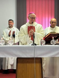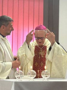 Al termine della celebrazione don Raffaele Grimaldi ha consegnato al vescovo Russotto una croce pettorale realizzata dai detenuti delle carceri minorili di Casal del Marmo e Rebibbia che il vescovo ha voluto indossare.